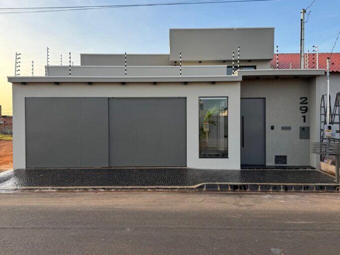 Garagem três carros, alpendre, sala, cozinha, dois quartos, banheiro, lavanderia/varanda,…