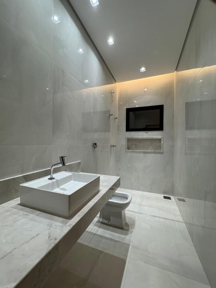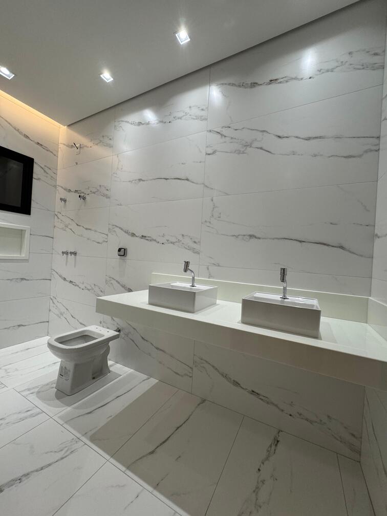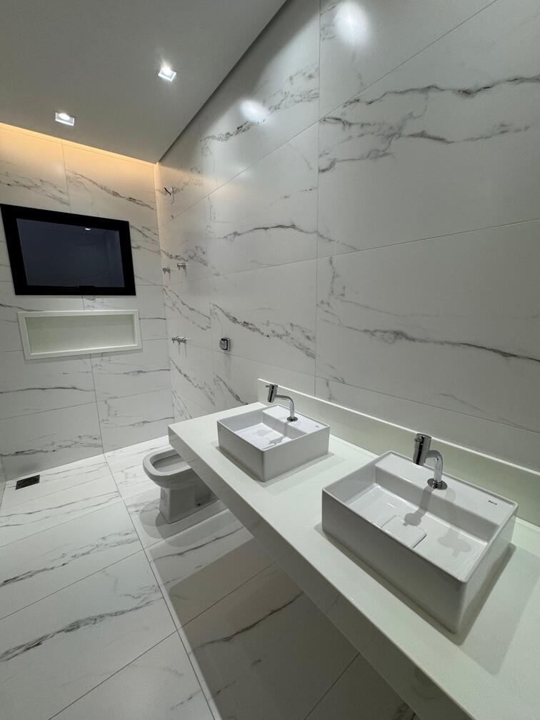 * Cozinha (área gourmet com ilha na pedra Mont Blanc) e churrasqueira